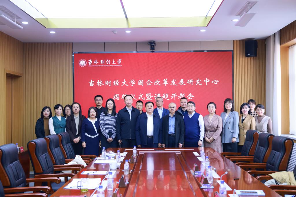 3月25日,吉林财经大学国企改革发展研究中心揭牌仪式暨吉林省国资智库“揭榜挂帅”课题开题会在我校举行。校党委书记张炳辉出席并致辞,省国资委党委委员、副主任孙明,吉智研究院总经理尹焕、综合管理部副部长杜欣倬到校指导,会议由副校长庞长亮主持。